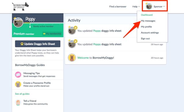 All of your messages can still be viewed in your messaging inbox. Simply click on your dog’s icon on the top right hand corner and click on “My Messages”. As you can see here:
