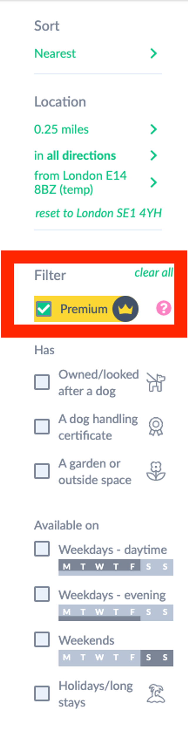 To search for premium borrowers remember to click the option on the left side of the page next for Premium.