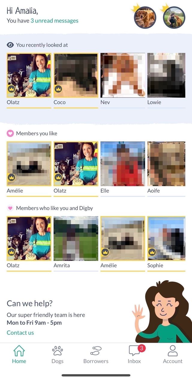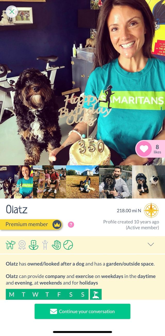Once you've made a search, you can select the 'Like' option directly from a members profile, when viewing their profile. Click the little heart beneath their profile pictures, and wait for it to turn pink to confirm that the dog/borrower profile has been added to your likes.