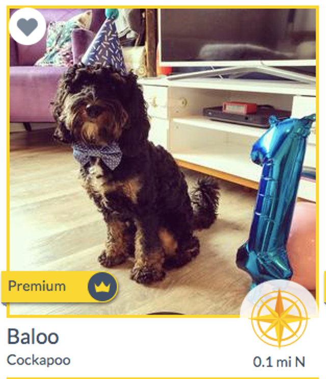 premium gold banner and crown on the left of the dog's name, which means they are a premium member, and have completed our safety checks.